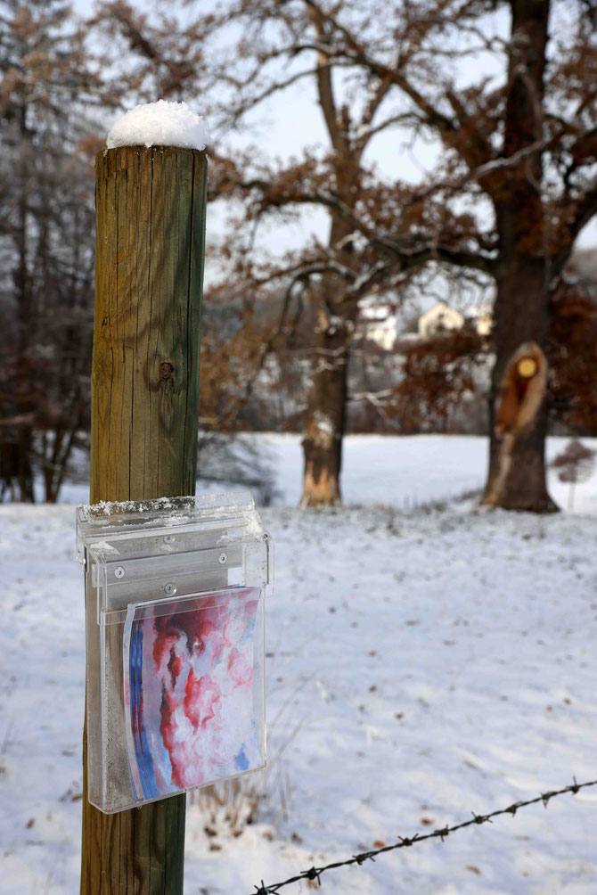 Postkarte "Wilder Himmel" von Maria gemalt, zum Mitnehmen am Weidezaun.